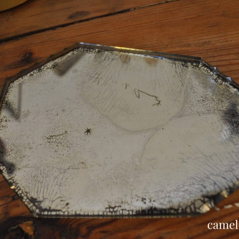 Fantastisk smukt patineret fransk håndspejl i kantet facon. Meget flot spejlglas med den skønneste patina. Så dekorativt.